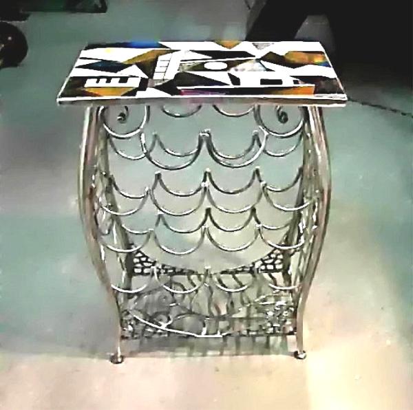 "GLASS & STEEL WINE BOTTLE STAND" by Steve Hazard