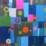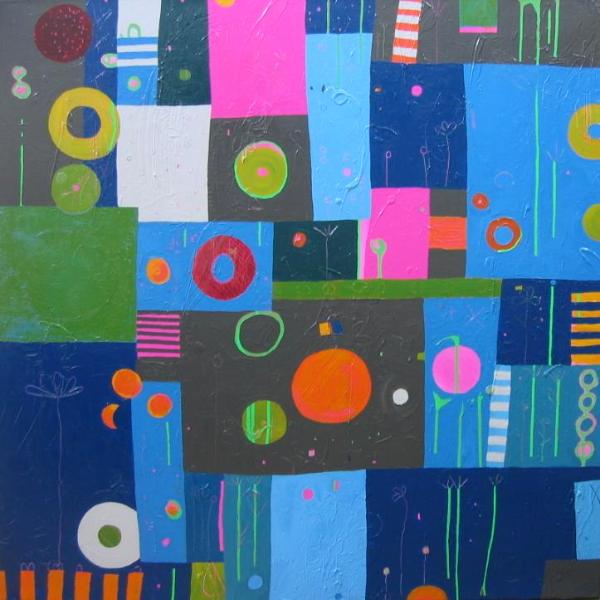 Acrylic and mixed media on canvas. 36" X 36" X 1.5" (sides painted, no need for frame - wire hanger included)