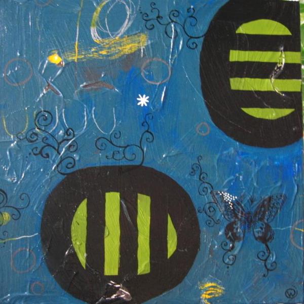 Acrylic and mixed media on cradled wood panel. 14" X 14" X 1.5" (sides painted, no need for frame - wire hanger included)