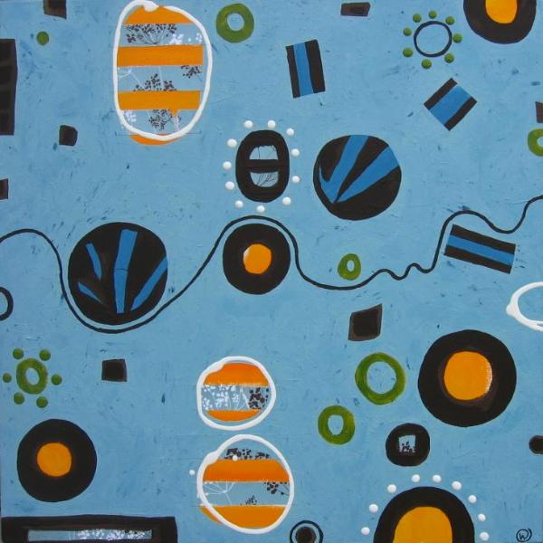 Acrylic and mixed media on canvas. 24" X 24" X 1.5" (sides painted, no need for frame - wire hanger included)