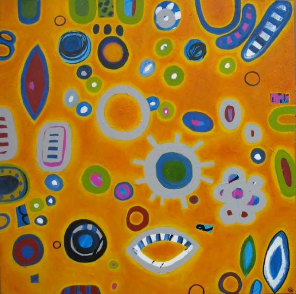 Acrylic and mixed media on canvas. 36" X 36" X 1.5" (sides painted, no need for frame - wire hanger included)