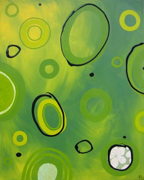 Acrylic and mixed media on canvas. 24" X 30" X 1.5" (sides painted, no need for frame - wire hanger included)