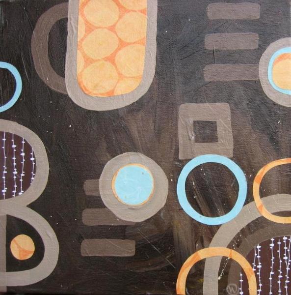 | Acrylic and mixed media on canvas. 12" X 12" X 1.5" (sides painted, no need for frame - wire hanger included) 1 comment | Post comment | Love this! Rich colors...the depth of the espresso with the delicate blue. | -- SNAC, 9/24/09