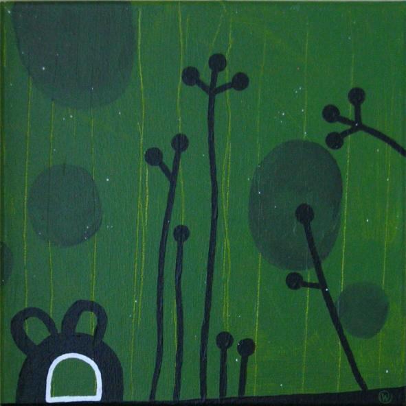 Acrylic on canvas. 10" X 10" X 1.5" (sides painted, no need for frame - wire hanger included)