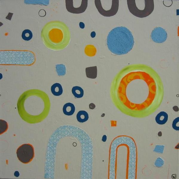 Acrylic and mixed media on canvas. 20" X 20" X 1.5" (sides painted, no need for frame - wire hanger included)