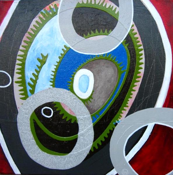 Acrylic on canvas. 12" X 12" X 1.5" (sides painted, no need for frame - wire hanger included)