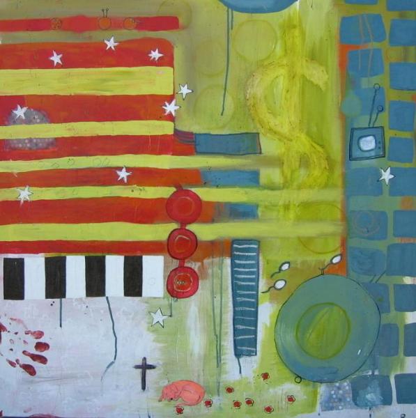 Mixed media on canvas. 36" X 36" X 1.5" (sides painted, no need for frame - wire hanger included)