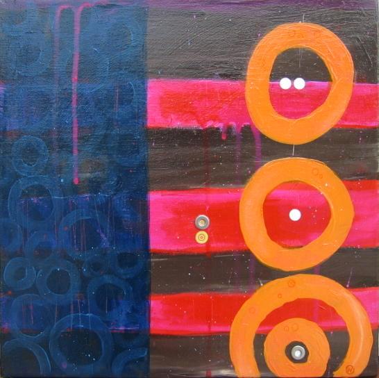 Acrylic and mixed media on canvas. 12" X 12" X 1.5" (sides painted, no need for frame - wire hanger included)