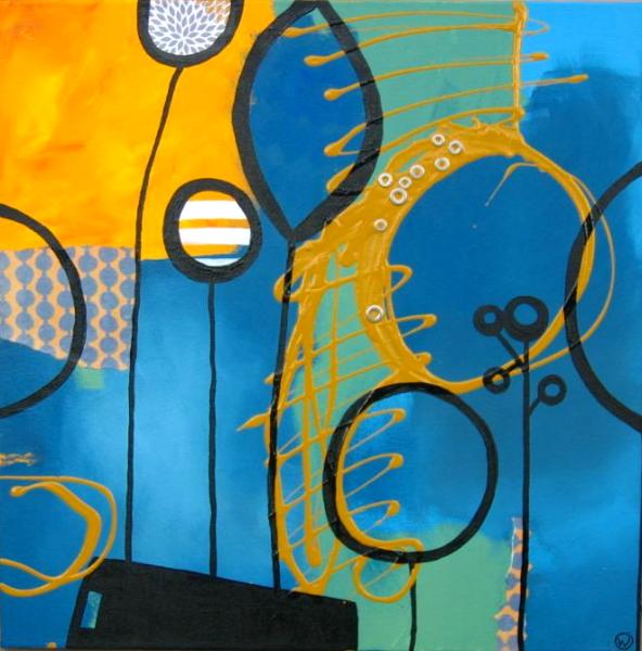Acrylic and mixed media on canvas. 24" X 24" X 1.5" (sides painted, no need for frame - wire hanger included)