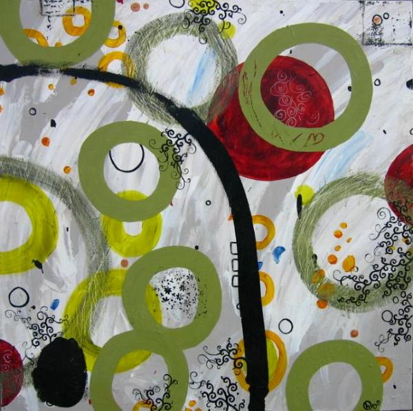 Acrylic on canvas with Acrylic gels, glass beads. 24" X 24" X 1.5" (sides painted, no need for frame - wire hanger included)