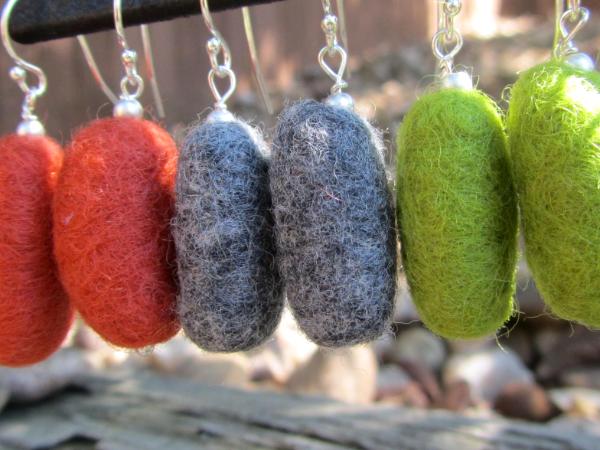 Sooner or later it had to come to this. What's a felt addict to do? Last year it was felt art cards..this year I am creating sterling silver wool felt earrings and pendants.