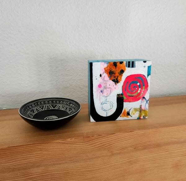 Mixed media on cradled birch panel. 4"x4"x1.5" (sides painted, sawtooth hanger on back)