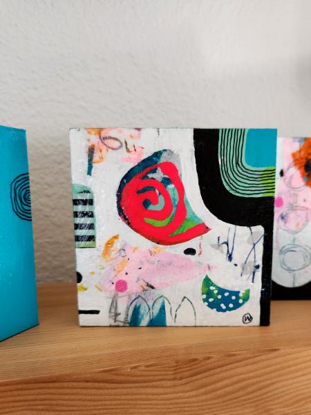 Mixed media on cradled birch panel. 4"x4"x1.5" (sides painted, sawtooth hanger on back)