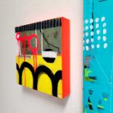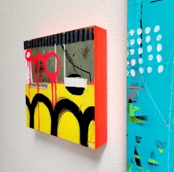 Mixed media on cradled birch panel. 8"x8"x1.5" (sides painted, sawtooth hanger on back)