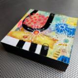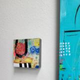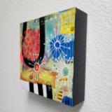 Mixed media on cradled birch panel. 6"x6"x1.5" (sides painted, sawtooth hanger on back)