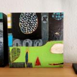 Mixed media on cradled birch panel. 8"x8"x1.5"