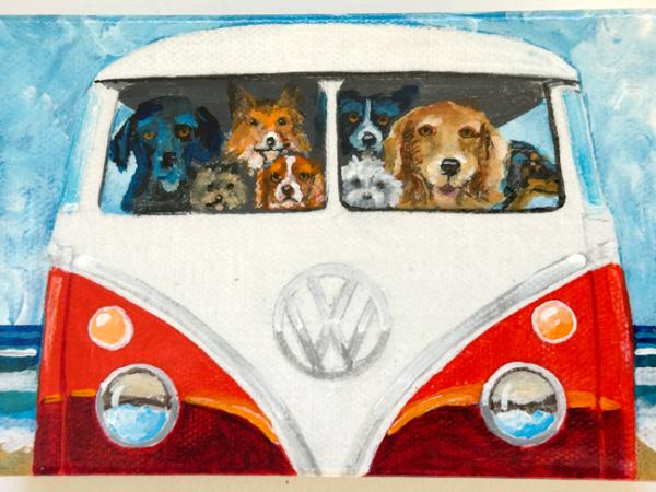 | | Click an image to enlarge   EIGHT DOGS ON THE BEACH $160