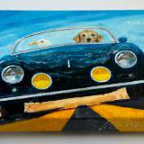 In this dog’s dream, he’s heading to the beach with his best pal Gus, in a borrowed Porsche they found idling in a Olive Garden parking lot, and he’s driving as fast as he can with the paw to the floor, carrying only a expired dog license and about a kilo of Puper-Roni® for the day’s picnic, plus a bag of sardines for Gus.