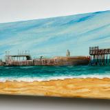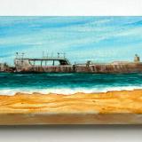This 4 x 12 inch French acrylic painting is by local Santa Cruz artguy Vern Scharf on 8 ounce cotton duck gallery wrap stretched canvas. Coated with several coats of varnish, so in a way, preserving a landmark.